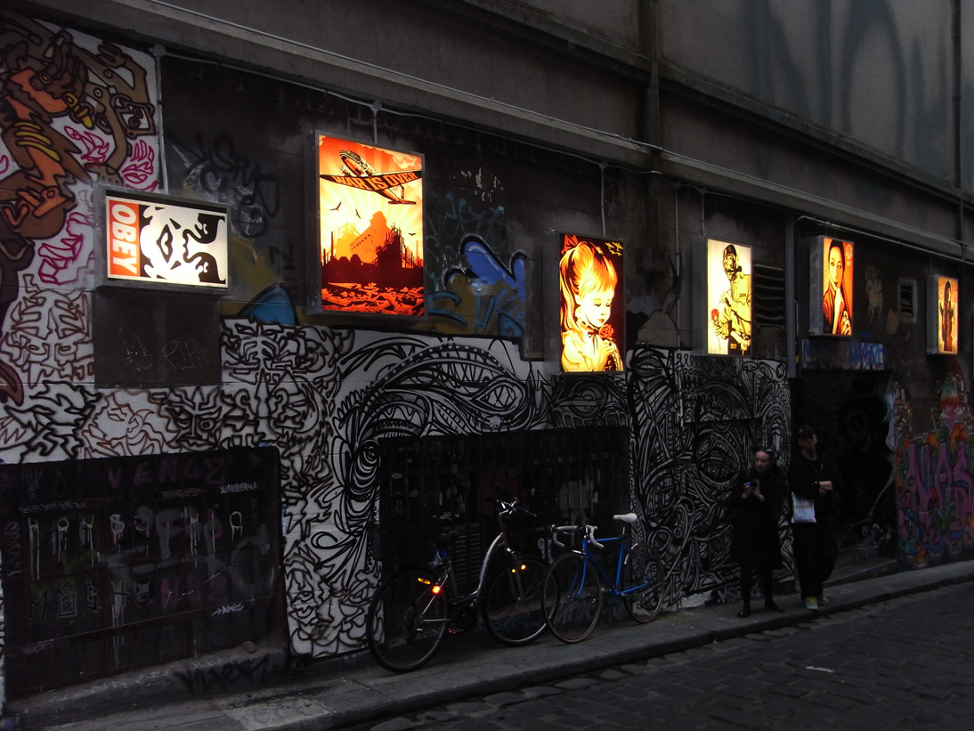 If you go for a wander down Hosier Lane in Melbourne at the moment you may stumble on the new Obey piece to go with the exhibition of his prints upstairs at Until Never Gallery.