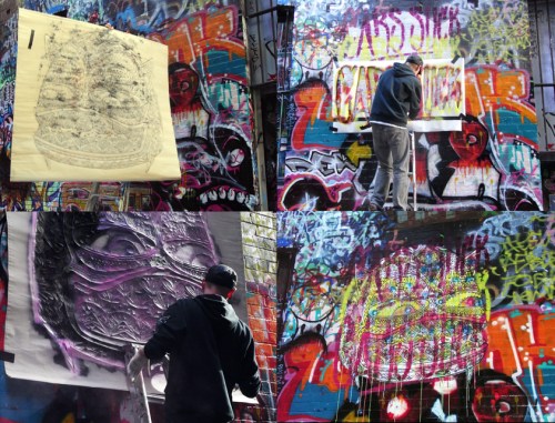 The crew were still going when i left for the day…so get on down there if you are in the neighbourhood, as its well worth a look at the wall. Those of you who follow my tees may be familiar with these little images. 😉