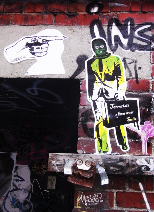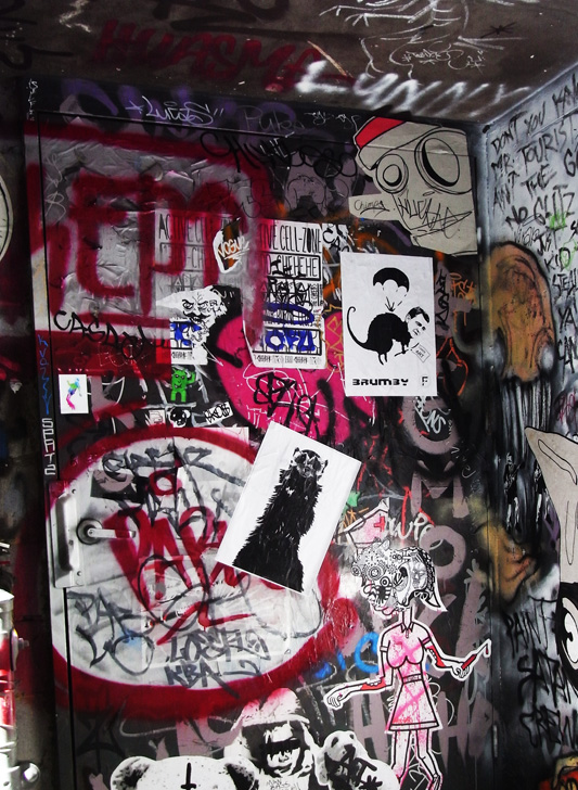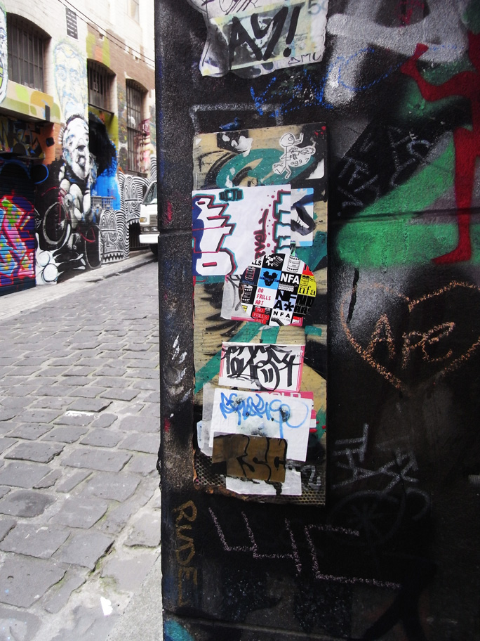 Well, looking back at 2010 it was a good year art wise for me. I started the year with work up in the $10,000 BSG Art Prize in Melbourne (Unfortunately, I didn’t take home the prize money!), I was in a further seven exhibitions over the year and finished up the year with work in the Fit to Print Exhibition at No Vacancy Gallery, where I sold seven prints. Another highlight for the year was being selected for the Sweet Streets – street art exhibition at 1000pound bend, where I also sold my painting along with five more prints. In the course of the year I managed to see some of my stickers get used on the cabinets at the National Gallery of Australia for their Space Invaders – Australian Street Art Exhibition, which was pretty nice!