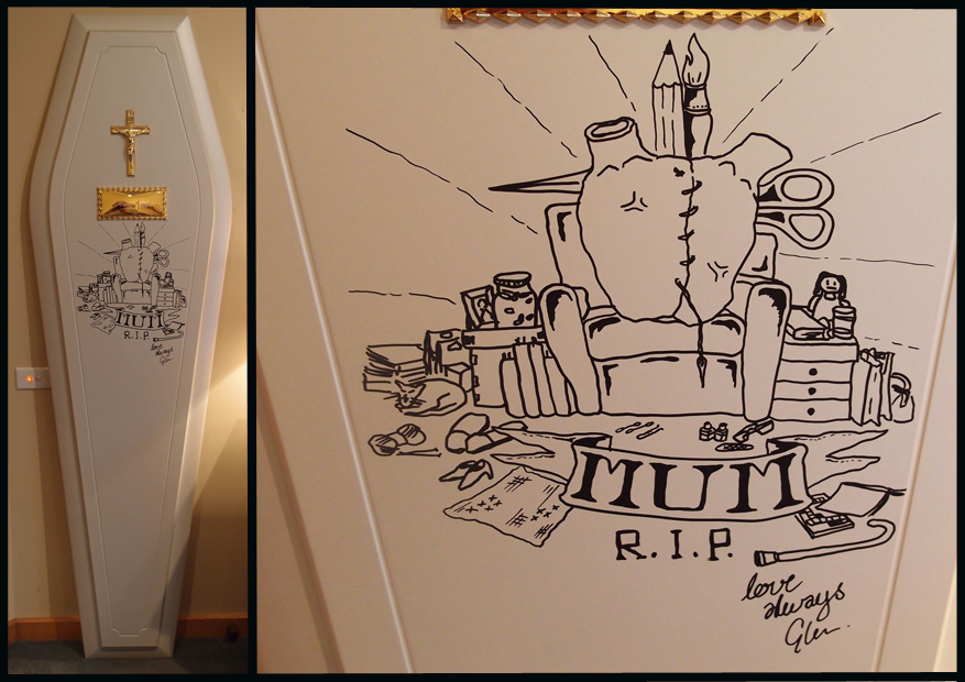 One of the things that she always wanted and that she has been reminding me about over the last ten or so years was that she really wanted me to draw on her coffin when it was her time to move on from this life. So last week the inevitable moment arrived…