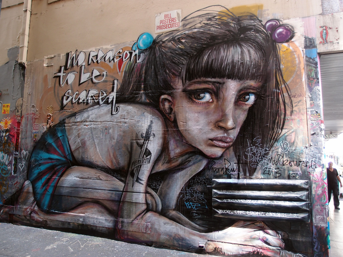 And below is also one of their street works in Union Lane in the Melbourne CBD, that they left as a small gift for the Melbourne punters as a part of their ‘Giant Storybook Project’. It looks awesome in the flesh!