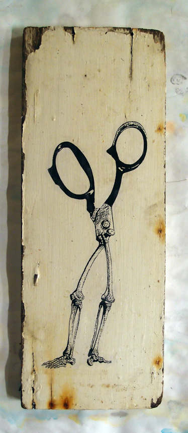 Skeleton Scissors – 22×45 cms – Mixed Media on found object