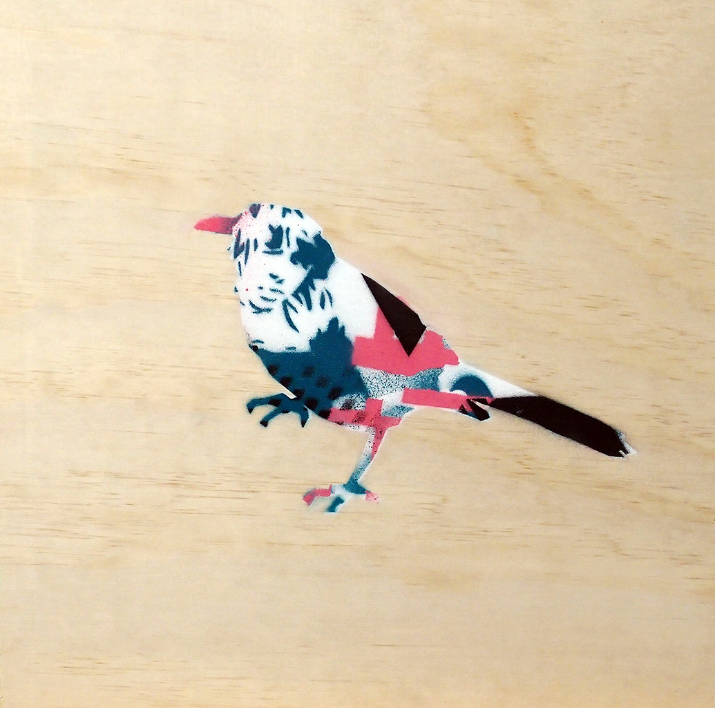Birds of a feather #1 – Acrylic Spraypaint on plywood, 2013. (45x45cms)