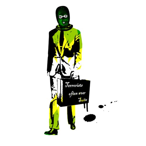 I got my ‘Terrorists often wear suits’ image back from the framers yesterday. It’s the version pasted on the billposters that were taken down from Hosier lane recently. It one of my favs for a while as it looks really precious the way it has been framed, while still remaining very street in my opinion.